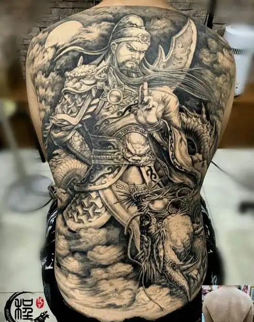 遮盖满背胎记关公纹身图片背部新传统纹身图案