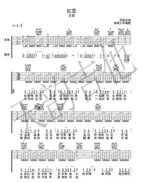 红豆吉他谱要不要买菜版c调指法编配六线谱