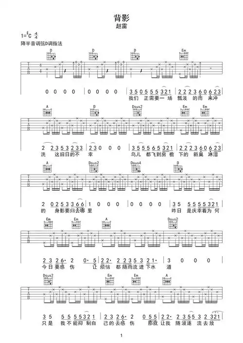 背影吉他谱 d调男生版_革命吉他编配_赵雷