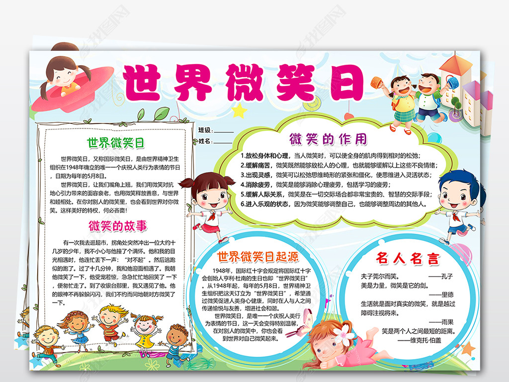 原创wordps世界微笑日小报微笑的心灵手抄报电子小报手抄报版权可商用