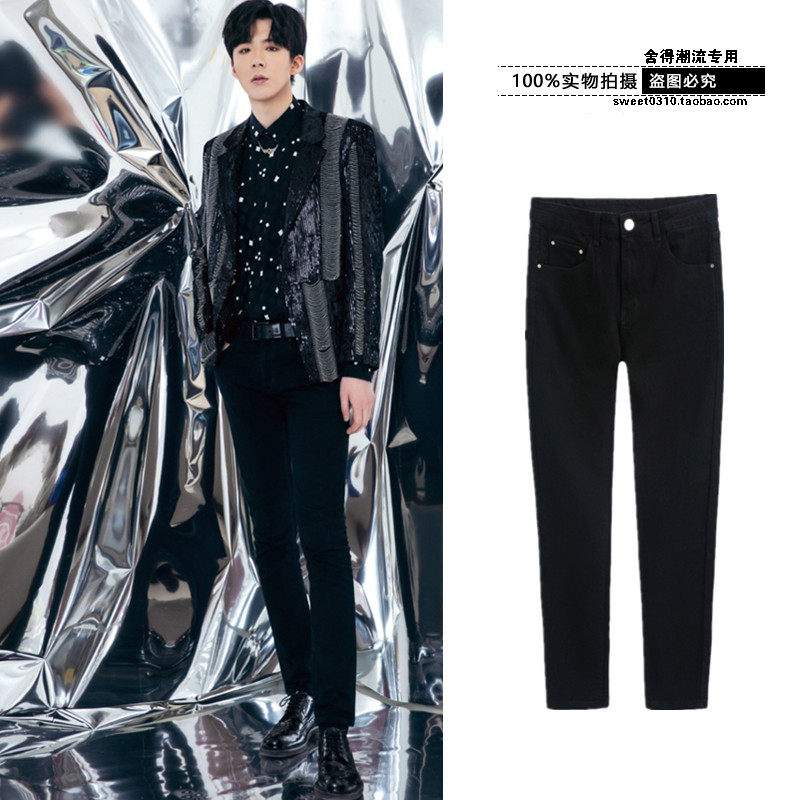 摩登兄弟刘宇宁同款黑色裤子韩版潮流百搭修身小脚牛仔裤靴裤男