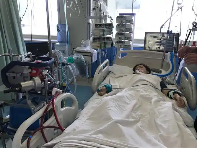 躺在重症监护室里的刘泽玮目前全靠呼吸机维持生命体征.