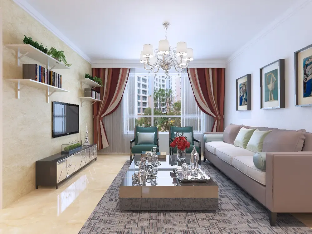 沈阳龙湖唐宁one简欧风格三居室装修效果图_110平米6万装修设计案例
