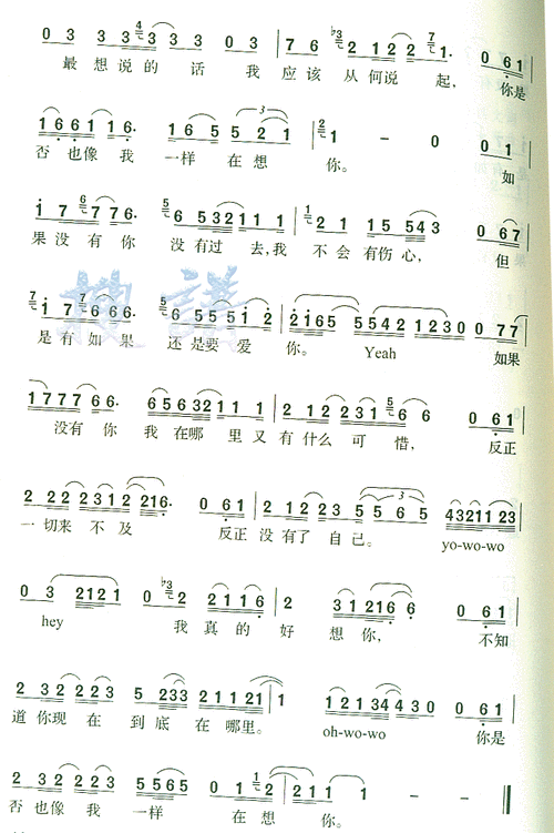 如果没有你女声弹唱版钢琴谱-降b调-莫文蔚1