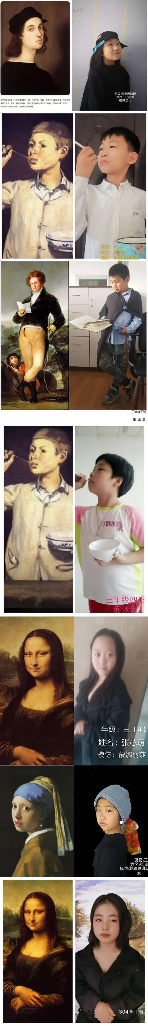 教育疫情防控"之友谊大街小学| 向大师致敬——2018级11班名画模仿秀
