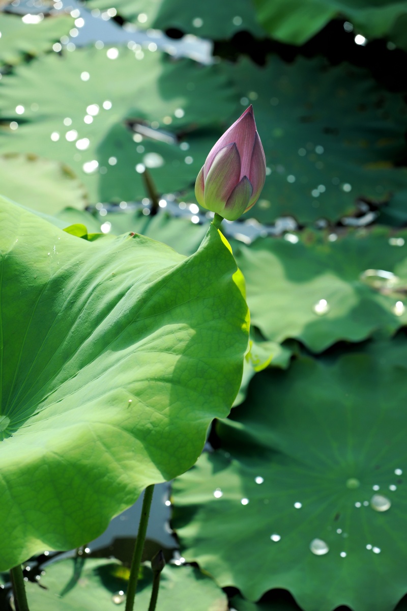 含苞待放荷花荷塘荷叶水珠莲花晨花禅意
