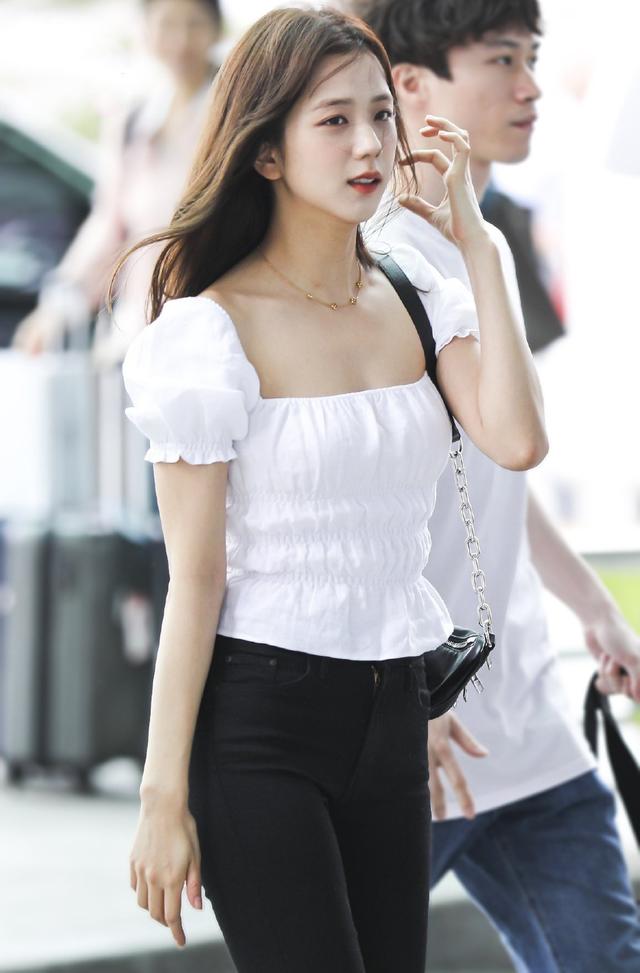 jisoo金智秀真会穿,一件白色针织衫好清纯,不愧是门面担当!