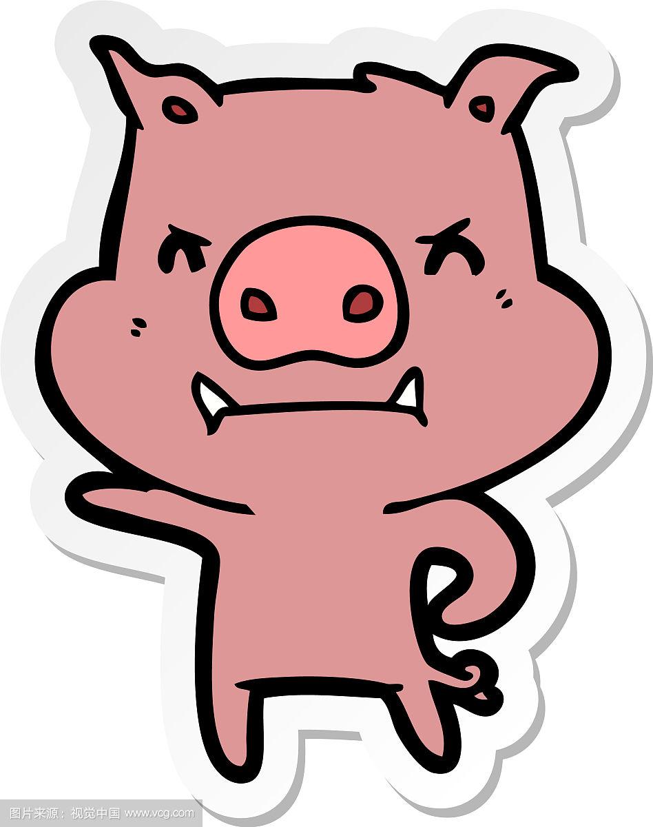 矢量卡通插图可爱猪生气. 孤立在白色背景上.