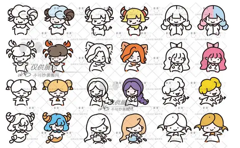 q版十二星座简笔画怎么画卡通可爱十二星座简笔画女孩教程