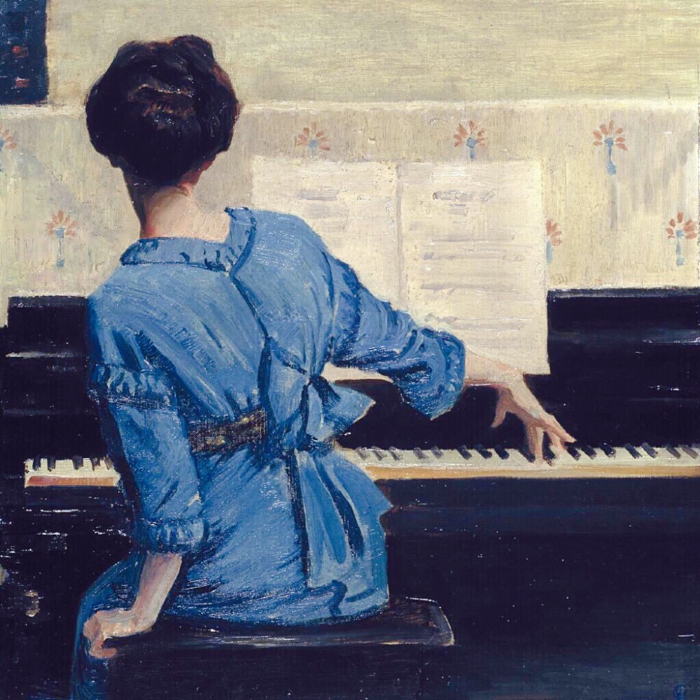 找一组女人弹钢琴的外国油画,谢谢