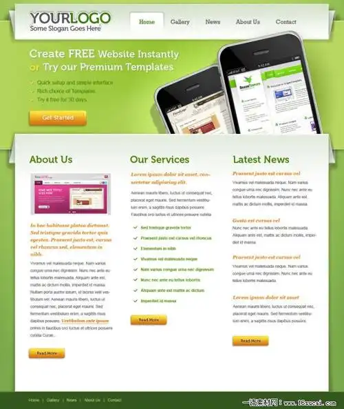 绿色手机网页模板psd素材下载