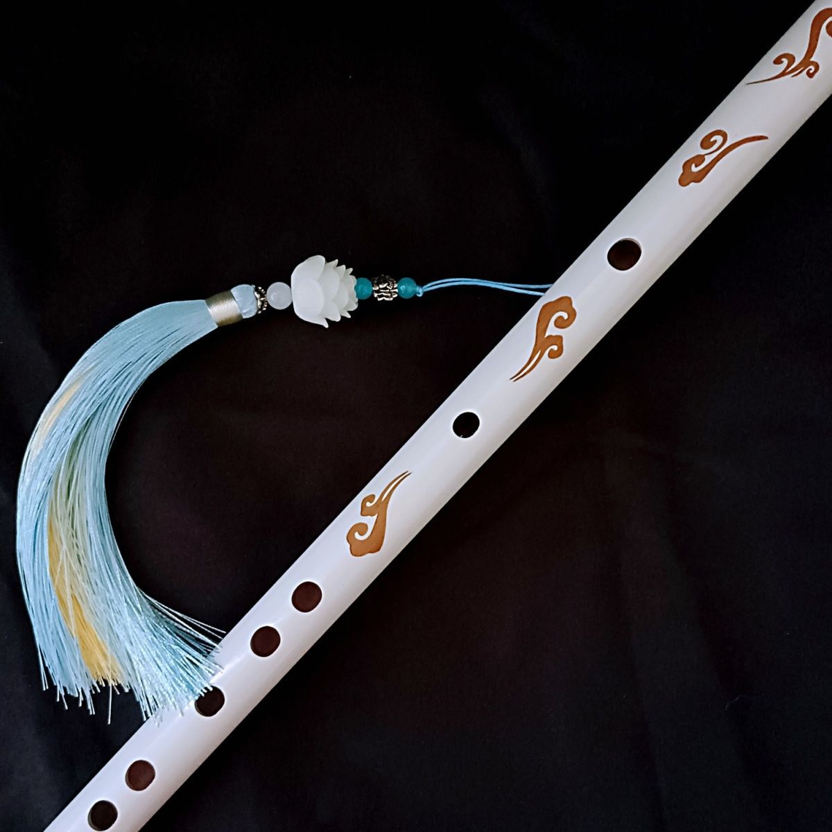 中国风白色竹笛子顾昀自学古风f横笛高端女cos仿古典精致民族乐器