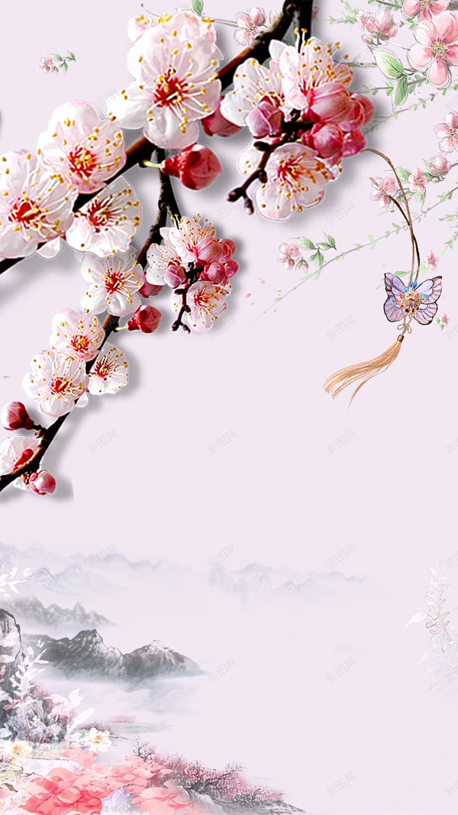 温暖粉色桃花节h5海报背景psd分层高清素材h5三生三世十里桃林十里