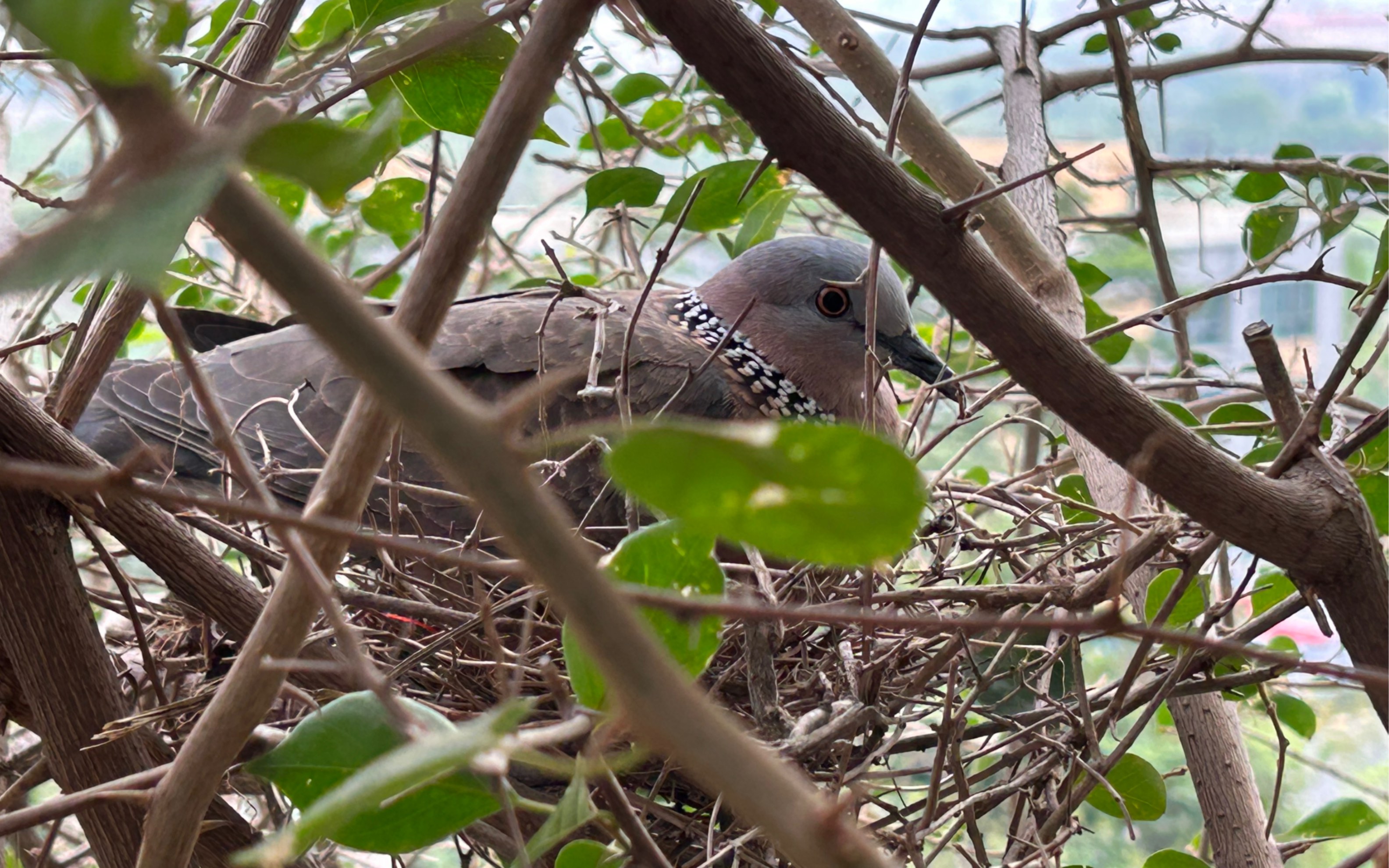 公母珠颈斑鸠同框,孵蛋交接班接头暗号咕咕咕咕阳台观鸟记第三弹