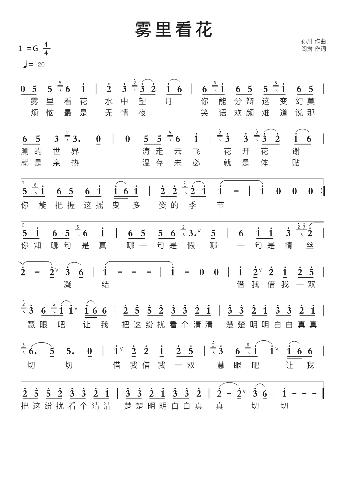 雾里看花(阎肃词 孙川曲)_四字歌谱
