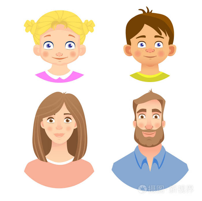 孤立的女孩头像与不同的面部表情.平面插画女性人脸情绪.
