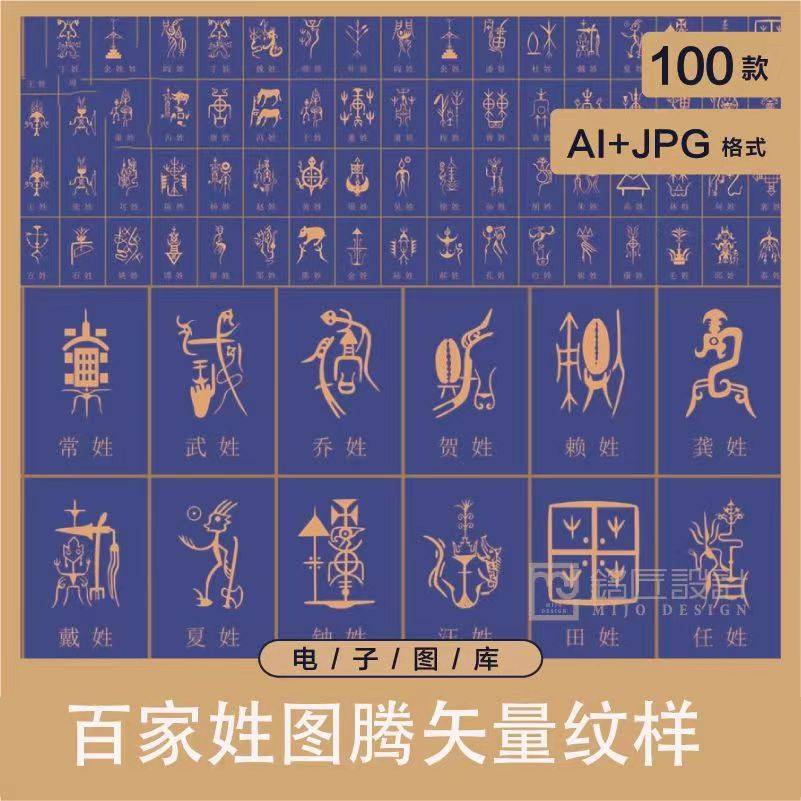 百家姓图腾姓氏100款图腾素材传统文化中国纹样底纹矢量ai素材jpg