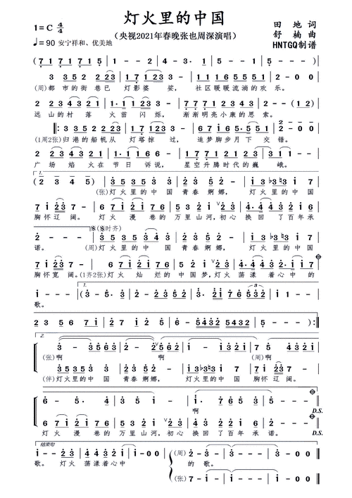 歌曲灯火里的中国的简谱歌谱下载