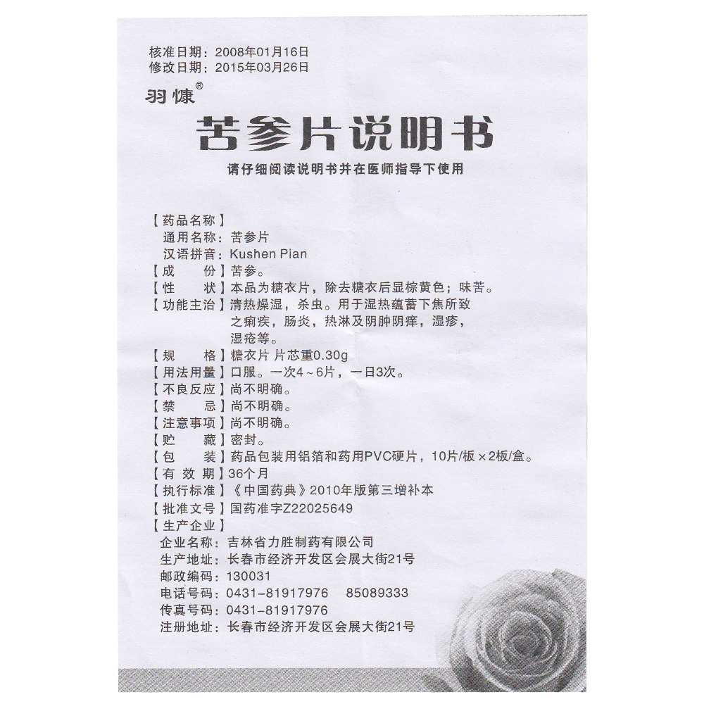 苦参片--药品|价格|口服普通片|药品说明书|包装|处方药|生产厂家
