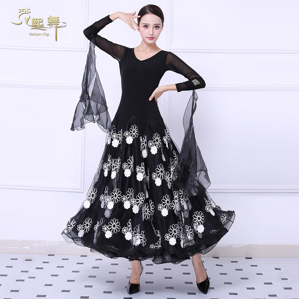 2020新款秋冬摩登连衣裙大摆国标舞华尔兹舞交谊舞演出服民族服装