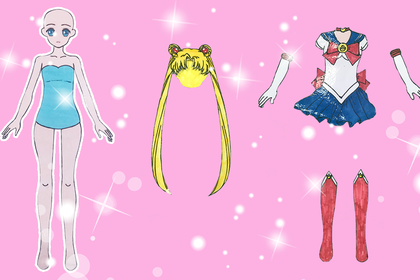 手工纸娃娃玩具纸娃娃装扮美少女战士水手月亮服装制作
