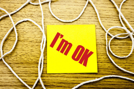 我是 ok-字在黄色粘纸条在木质背景.商务理念照片