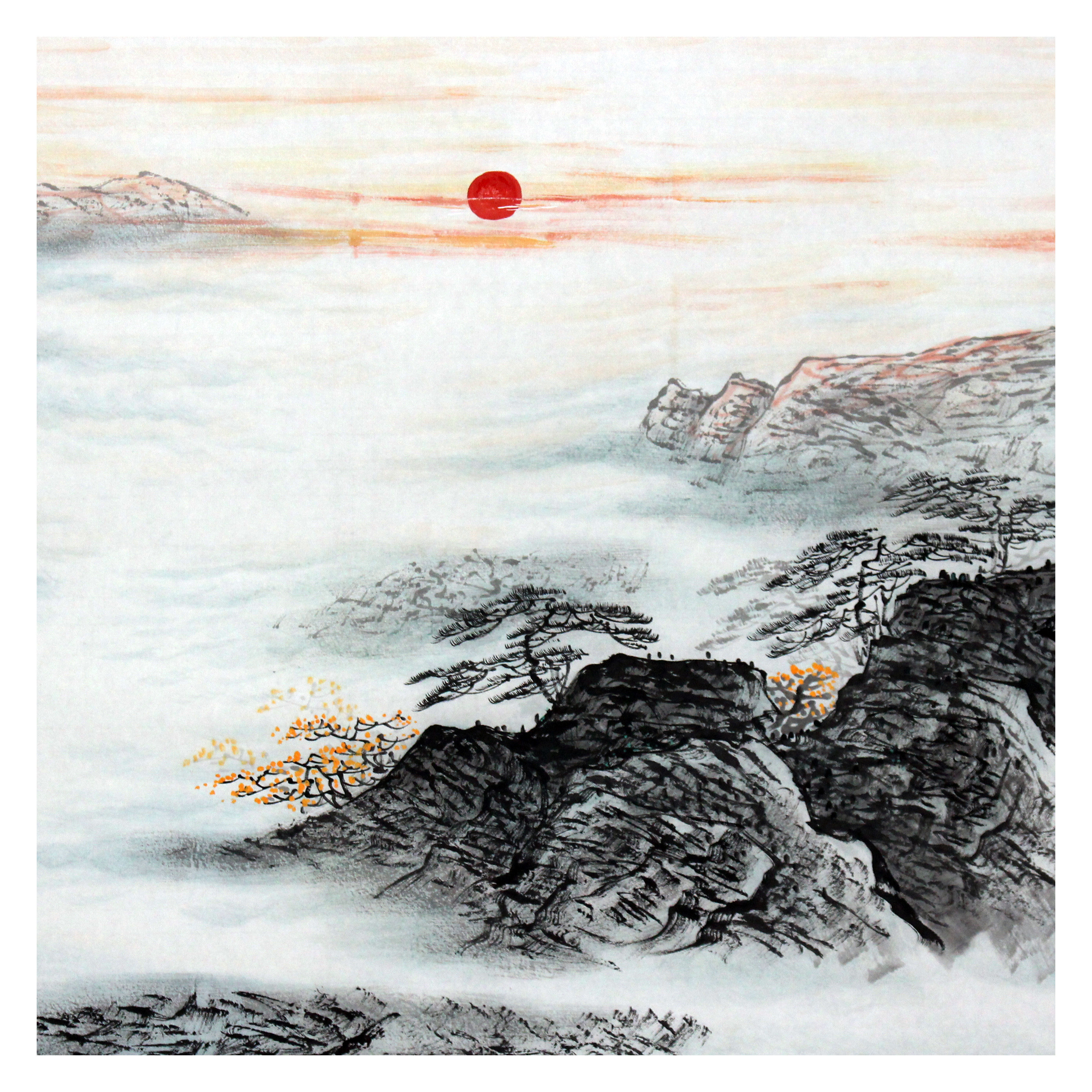 礼品 美术工艺品 书画工艺品 国画 黄山日出 朦胧画 字画 书画 山水画