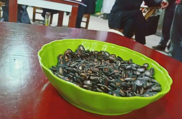 一盘瓜子放桌前