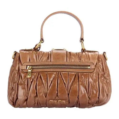 miumiu(缪缪)巧克力色皮质褶皱两用包