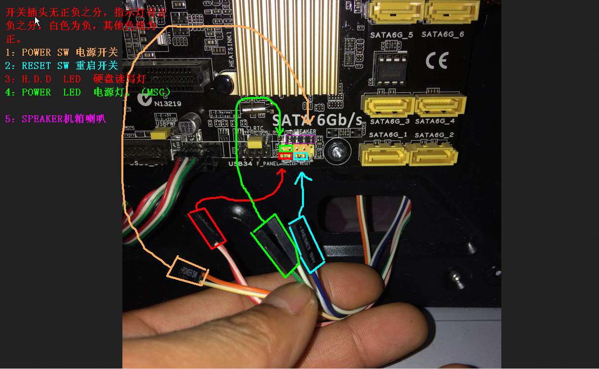 主板开关键 怎么插的 求大神教我