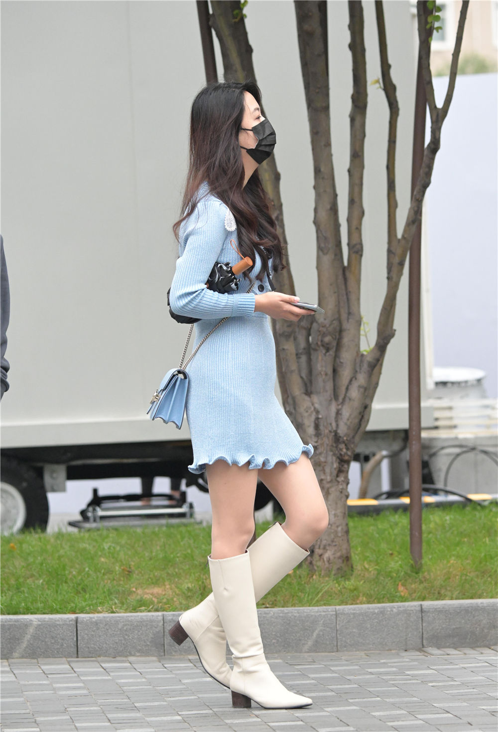 休闲的白色鞋子并不是最好的选择,长靴搭配才是时尚的首选