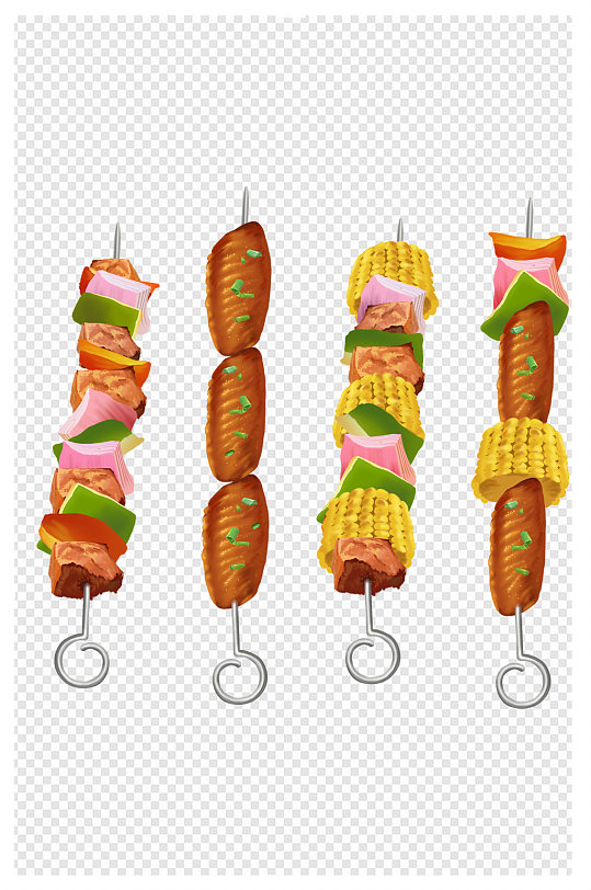 炸串彩色卡通手绘烤串烧烤食物素材原创插画海报