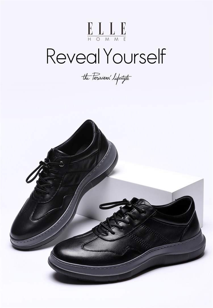 elle/elle鞋子男运动鞋黑色软面时尚休闲鞋牛皮百搭防滑潮鞋-男士休闲