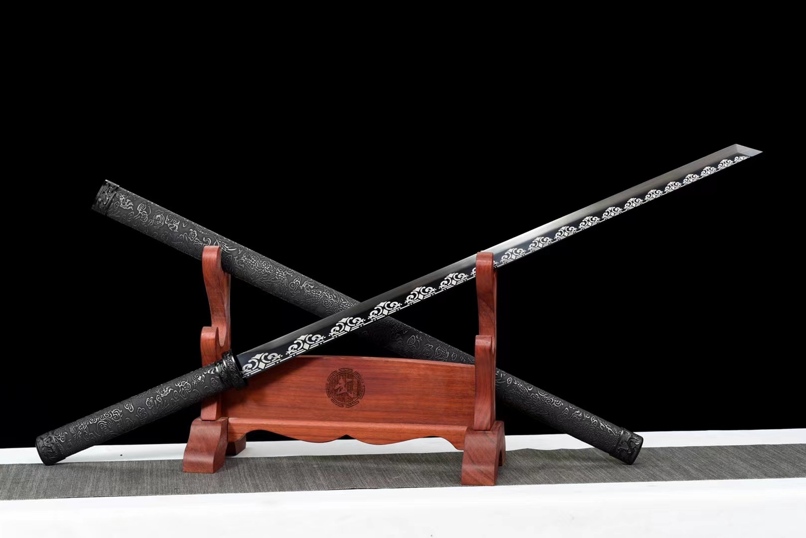 龙泉市刀剑高锰钢收藏黑金古刀烤蓝唐横刀一体硬宝剑冷兵器未开刃