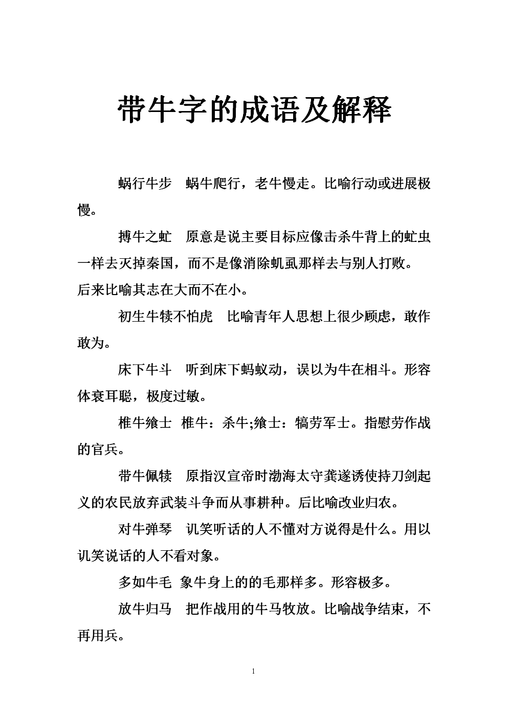 带牛字的四字成语 带牛字的成语(一) 牛不出头牛刀割鸡牛刀小试牛鼎烹
