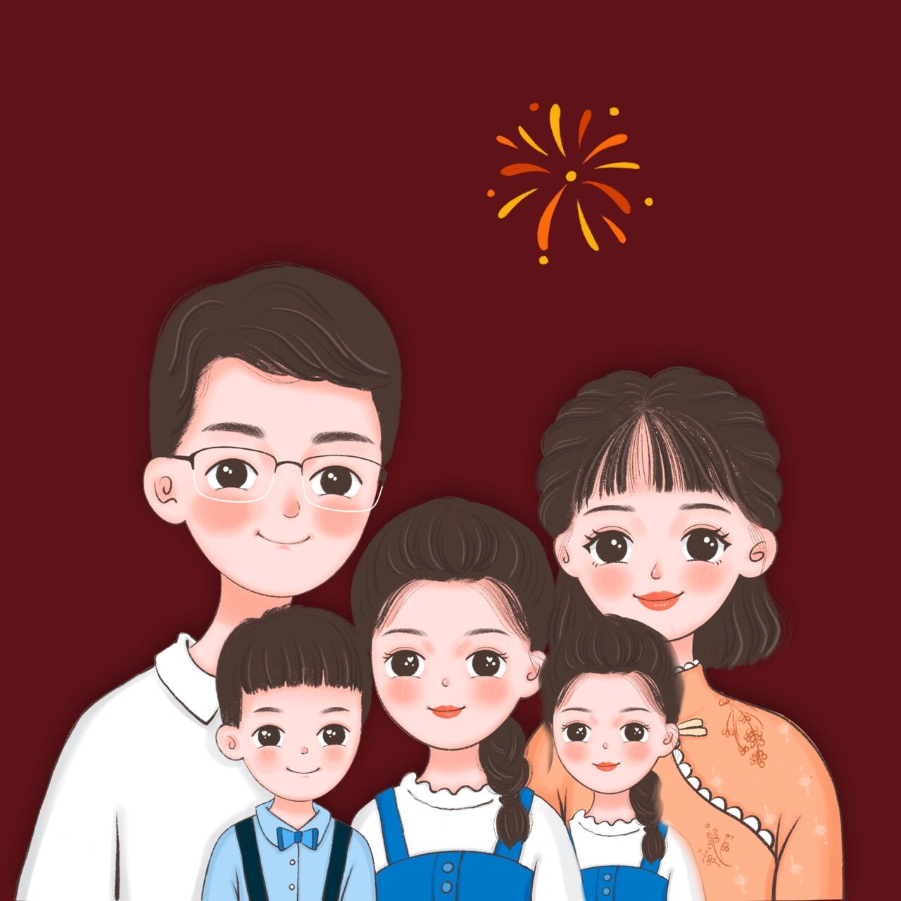 年味十足的全家福图片,一家五口动漫头像,满满的仪式感
