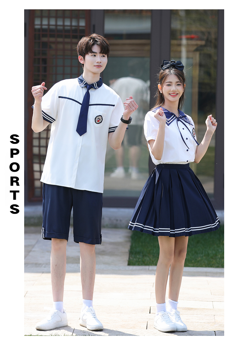 实拍情侣学院风夏季学生短袖衬衣套装 班服 校服 - 17网
