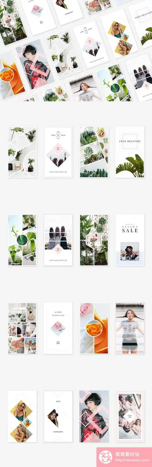 多用途照片排版框架psd智能贴图模板-窝窝素材站