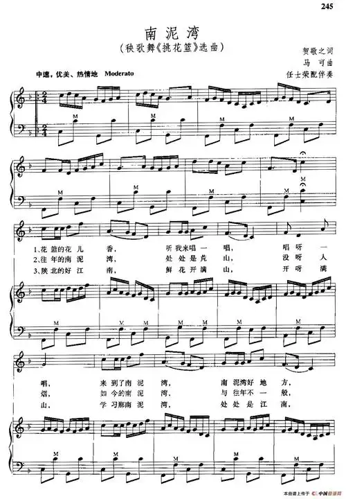 南泥湾钢琴谱_声乐正谱_f调_高考声乐钢琴伴奏谱五线谱正谱_钢琴谱