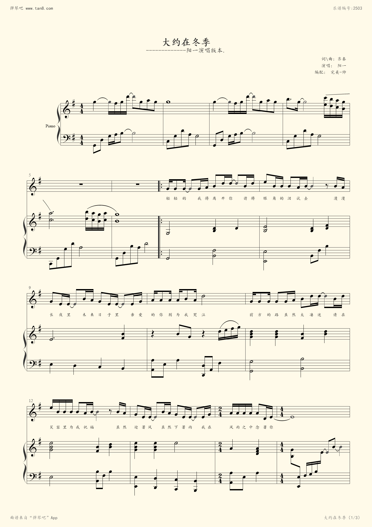 齐秦大约在冬季钢琴谱