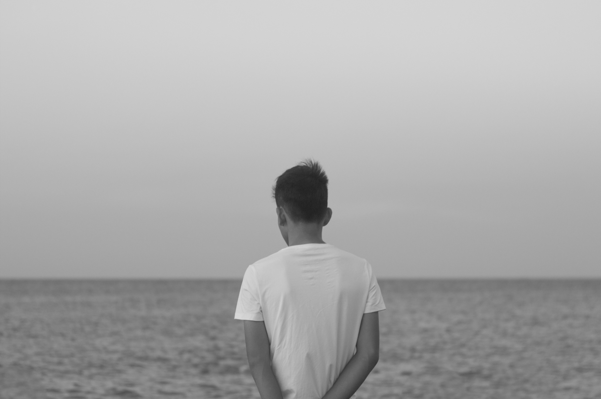 男生孤独一个人黑白图片背影2560x1600分辨率查看