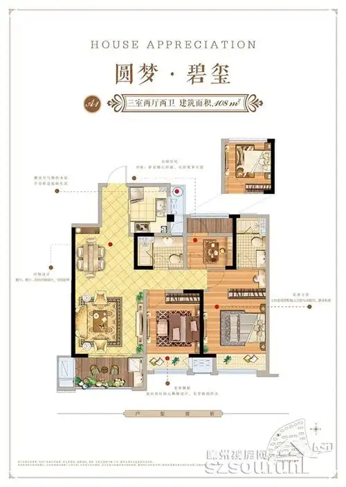 【新城香悦公馆_杭州新城香悦公馆楼盘】三居室户型图|3室2厅1厨1卫建