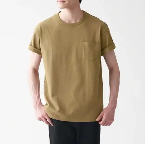 无印良品muji男式粗棉线口袋t恤
