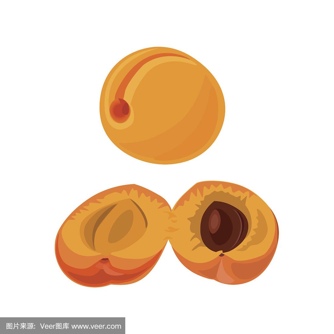杏,白色背景,美,素食,绘画插图