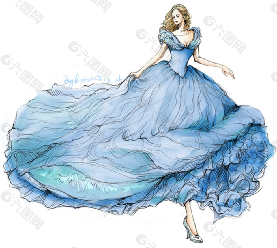 蓝色长裙礼服设计图