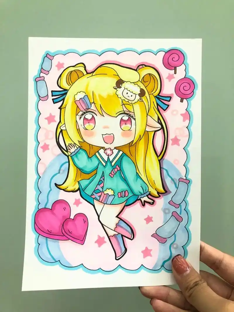动漫女生 #卡通画# #马克笔# #动漫# #q版动漫女生