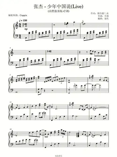 《少年中国说,钢琴谱》张杰 许嵩(五线谱 钢琴曲 指法)-弹吧|蛐蛐钢琴