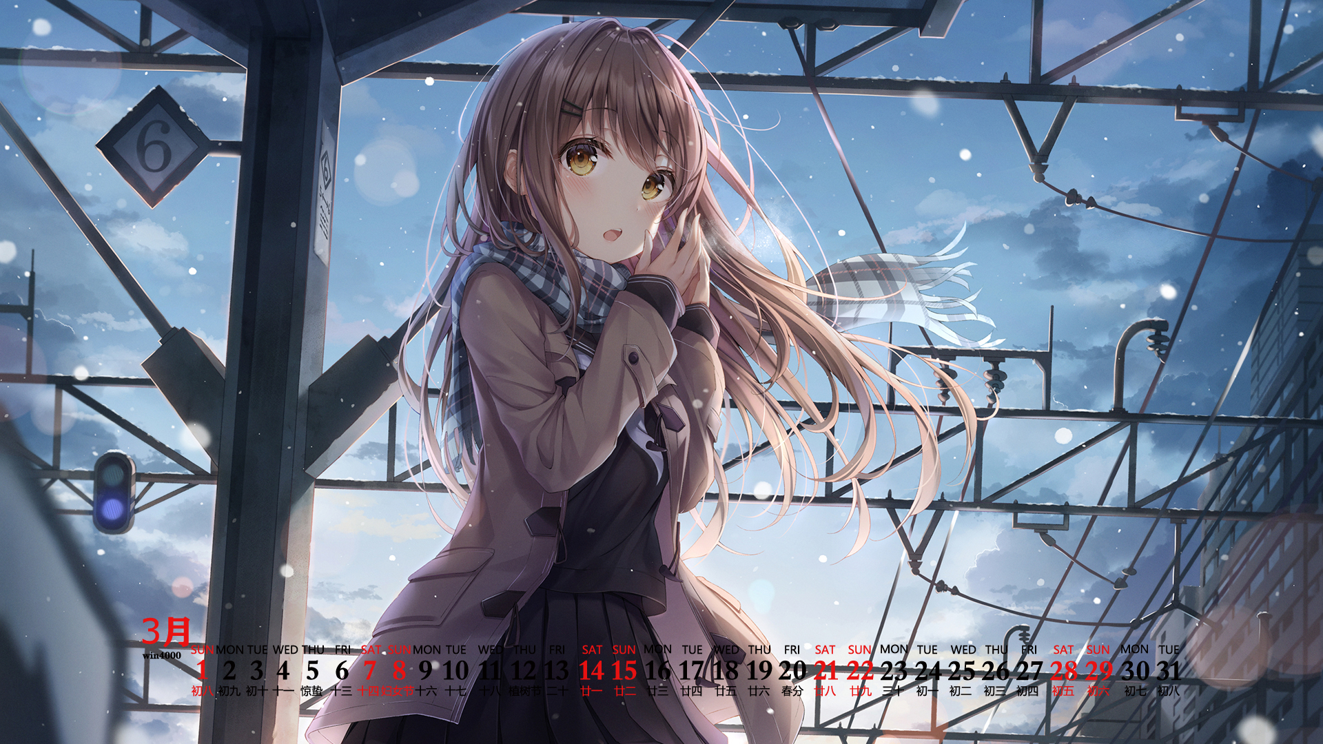 2020年3月动漫美女插画唯美桌面日历壁纸