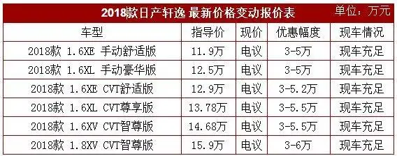 东风日产官方降价表各4s店报价混乱图表