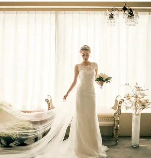 轻婚纱缎面秋季新款女白色简约旅拍鱼尾新娘抹胸韩式出门纱拖wed